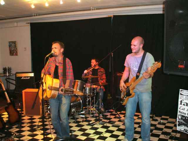 Lydstyrken steg støt, men det lod ikke til at genere nogen. Snarere tværtimod. Der var også kommet nyt publikum til i form af en bilfuld jyder, der var kørt hele vejen fra Jylland, blot for at komme for sent til deres ven Heines optræden. Nu måtte de jo så nøjes med os, og vi gjorde vores bedste for at give dem en god oplevelse. Tirsdagens koncert på Drop Inn sad stadig i kroppen og gav os et spillemæssigt overskud. Vi spillede godt, gjorde vi, og muligheden for at sende sangene af sted med små anekdoter blev også udnyttet til fulde.
